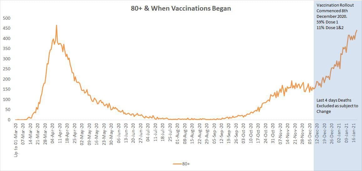 Deaths in the 80+ population, since the vaccine roll out.