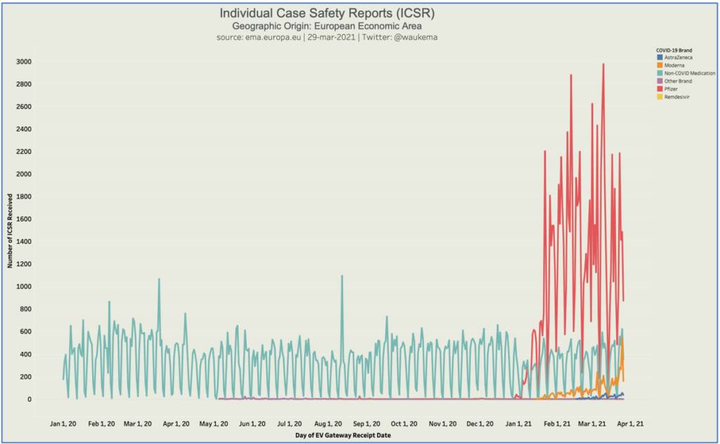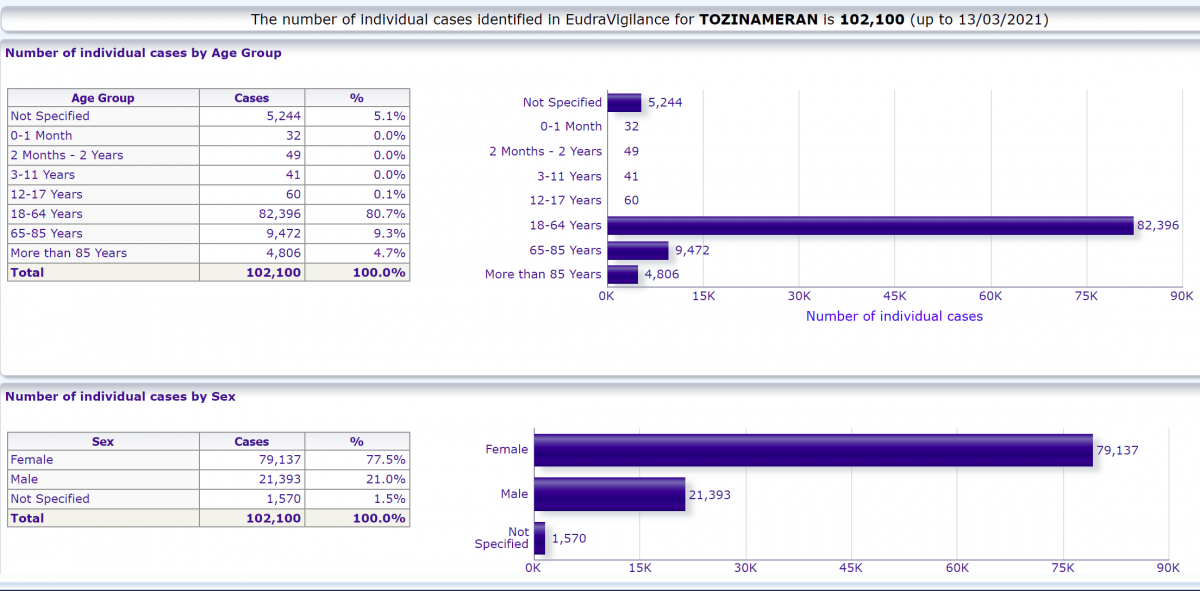 Prema statistikama koje su dostavile vlade i srodne medicinske agencije, Francuska je za Pfizer zabilježila 45,3 smrtnih slučajeva na milijun doza naspram 17,9 za AstraZenecu. Za Njemačku su brojke 29,9 naspram 6,5, za Veliku Britaniju – 20,7 i 24,2, Norvešku – 164,3 i 44,6, Austriju – 47,5 i 7,5 i Italiju – 10,9 i 7,3.