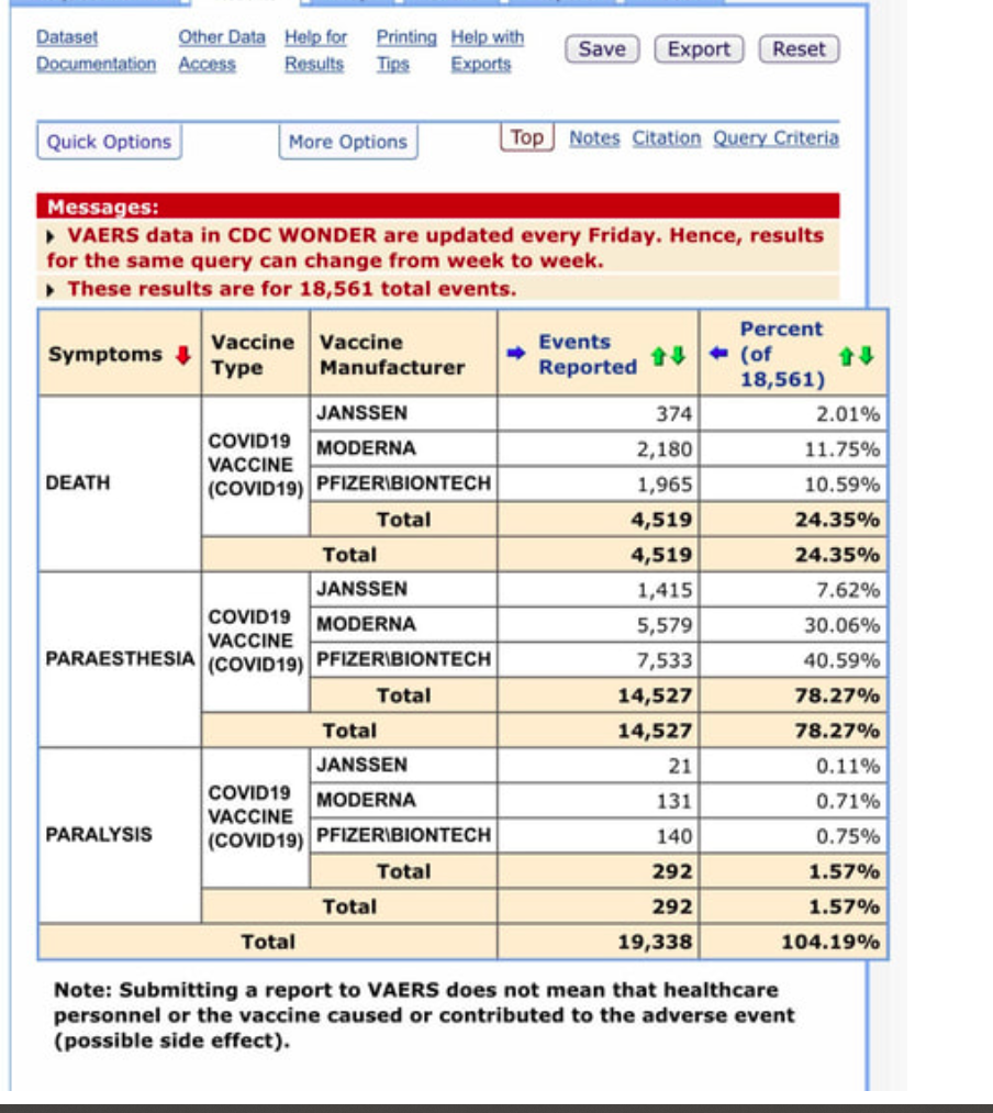 30.1. 2021 https://childrenshealthdefense.org/defender/329-deaths-9516-other-injuries-reported-following-covid-vaccine-cdc/?utm_source=salsa&eType=EmailBlastContent&eId=b83e31b3-6af3-4080-8b16-53bfc333e7da&fbclid=IwAR1U-qFrD-WWRasPI0IYeotmO7F22q05xwkQBopyXuZNSs8PxoHGYgI5qgg