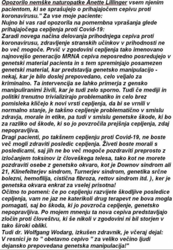 Po prejemu mRNA cepiva ima 50% ljudi težave, da ne morejo v službo, da imajo glavobol, bolečine po telesu in so bolni. Starejši ljudje pa lahko umrejo nekaj dni po prejemu cepiva.