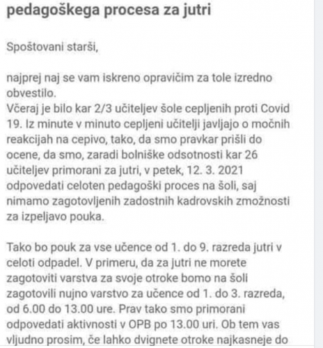 Osnovna šola v Velenju 10.3. 2021