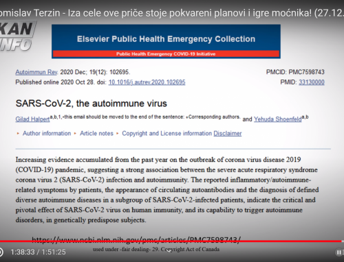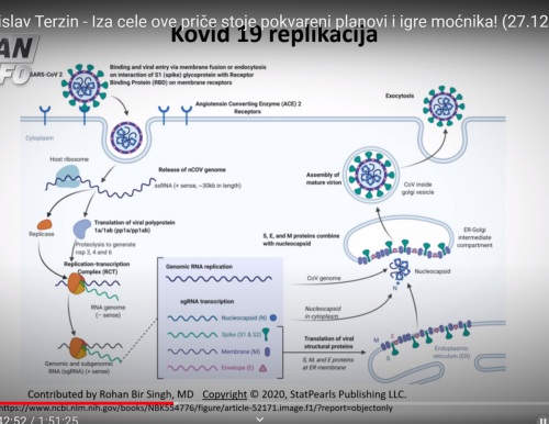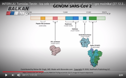 Prof.dr. Tomislav Terzin je profesor genetike, molekularne biologije in biologije razvoja na Unverzi Alberta v Kanadi. Preučeval je viruse in molekularno genetiko. Opazil je sinhronizacijo držav med pandemijo in verjame, da obstaja načrt in tisto, kar so imenovali teorija zarote, se zdaj javno govori- banke so izčrpane in omenjajo nov ekonomski sistem The Great Reset. SARS CoV-2 se ne obnaša tako kot ostali koronavirusi, ki povzročajo trebušno girpo, prehlade in druge respiratone bolezni. Povzroči lahko avtoimunsko reakcijo z odpovedjo organov. Pri nekaterih ljudi povzroča trajne posledice, kot so nespečnost, motnje spomina ...povzroča pa majhno smrtnost in zato je čudno, da so ukrepi tako drastični in nesorazmerni, zlasti na področju šolstva, glede na to da otroci niso rizična skupina. Napovedujejo potni list na podlagi cepljenja, kar pomeni nadzor globalne vlade. Če se 90 % ljudi ne upre načrtom tega zasužnjevanja, nam bodo odvzeli vse človekove pravice. V Franciji poteka upor in umaknili so uredbo, da ljudje ne smejo snemati policistov med njihovim delom.
