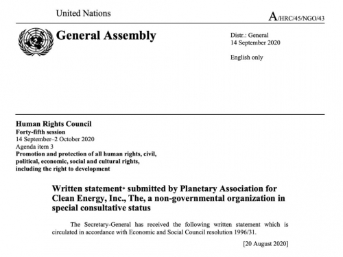 Uradna nevladna organizacija, povezana z OZN, Planetarno združenje za čisto energijo (the Planetary Association for Clean Energy -PACE inc.), je opozorila Odbor za človekove pravice pri Združenih narodih zaradi politik obveznega cepljenja, ki zajemajo svet in je izpostavila ogromno hinavščino Organizacije Združenih Narodov pri sledenju svojim predpisom, politikam in smernicam. To poročilo je objavljeno na lastni spletni strani OZN! Zakaj bi OZN kršila lastno politiko? Ker je polna tehnokratov, ki so posvečeni popolnemu nadzoru vseh ljudi na planetu Zemlja. Tehnocracy News je že razpravljal o popolnem pomanjkanju etike in morale v tej miselnosti tehnokratov, kjer cilji upravičujejo sredstva.