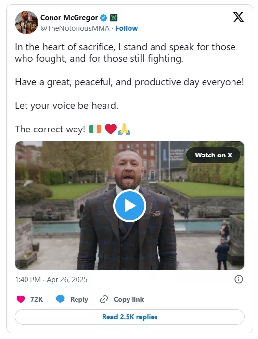 Borec MMA Conor McGregor je na družbenih omrežjih izrazil podporo pohodu.