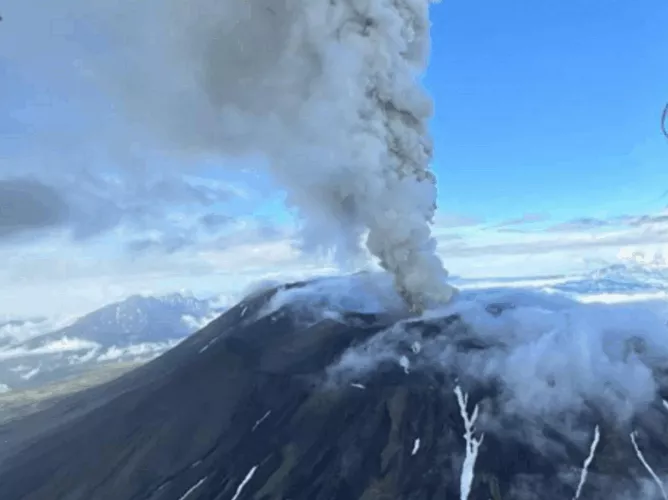 Po podatkih skupine za spremljanje vulkanskih izbruhov na Kamčatki (KVERT) se je izbruh zgodil v nedeljo ob 4.50 zjutraj po lokalnem času, pri čemer je z vrha, visokega 1856 metrov, izbruhnil steber pepela do višine 6000 metrov.