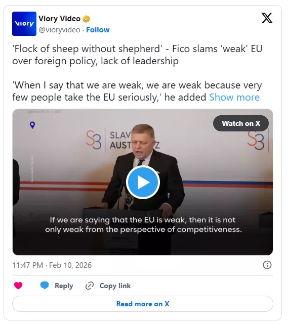 Evropska unija se obnaša kot čreda ovac, ki tava brez pastirja, je dejal slovaški premier Robert Fico.
