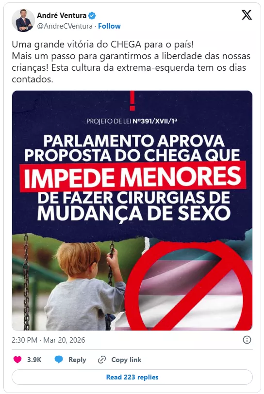 To je zgodovinska zmaga za tradicionalno družino, za starševske pravice in predvsem za zdrav razum. Portugalski parlament je končno razveljavil katastrofalen »Zakon o samoodločbi« iz leta 2018, ki je odprl vrata prebujeni ideologiji. To prepotrebno spremembo je vodila konservativna stranka Chega s podporo sredinsko-desnih strank PSD in CDS-PP.