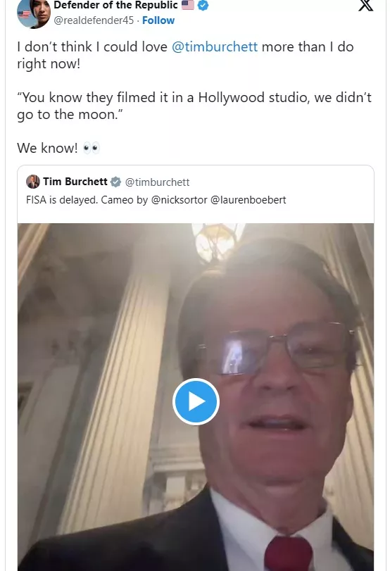 Poslanec Tim Burchett (R-TN) je potrdil tisto, kar milijoni sumijo že desetletja: pristanek Apolla 11 na Luni leta 1969 je bil izveden v hollywoodskem studiu, ne na površini Lune.