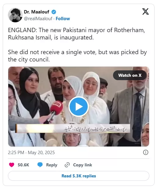 ENGLAND: The new Pakistani mayor of Rotherham, Rukhsana Ismail, is inaugurated.