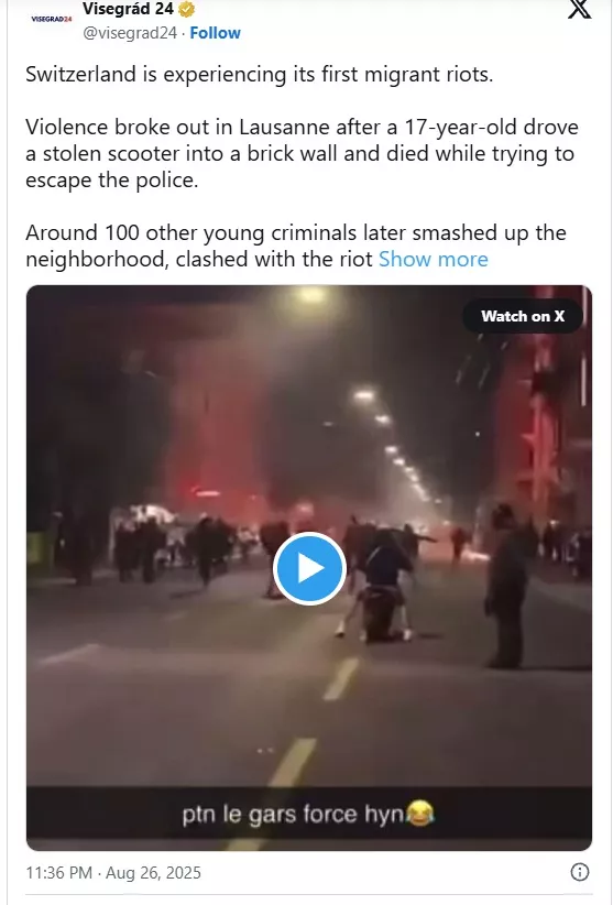 Violence broke out in Lausanne after a 17-year-old drove a stolen scooter into a brick wall and died while trying to escape the police.
