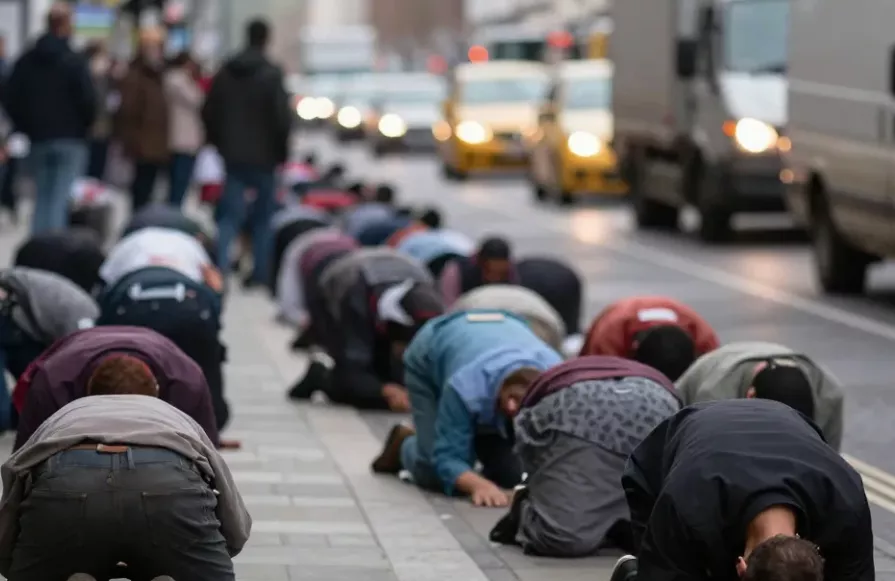 Tensions erupt on UK roads as van and truck drivers confront groups of Muslims holding prayers in the middle of busy streets. This compilation of footage captures several heated incidents where traffic is brought to a standstill, leading to frustrated drivers taking matters into their own hands.