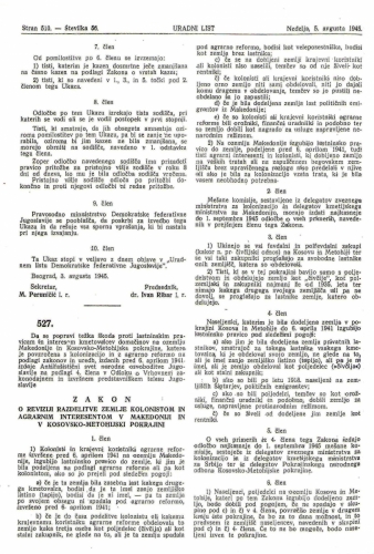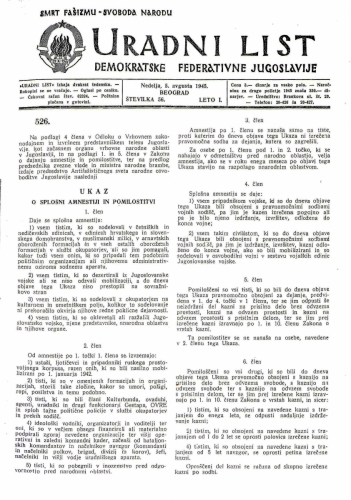 1. SPLOŠNA AMNESTIJA IN POMILOSTITEV, u. l. Demokraticne Federativne Jugoslavije, Nedelja, 5. avgsuta 1945