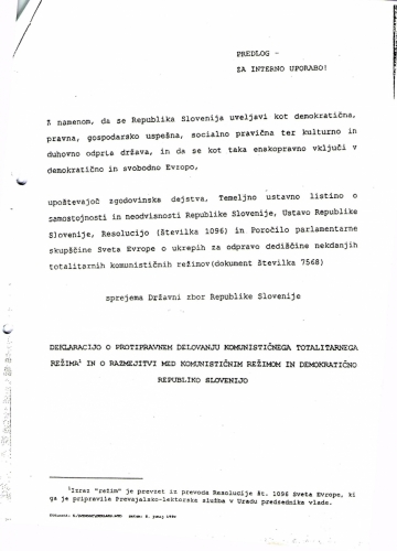 3. Deklaracija o protipravnem delovanju komunisitičnega totalitarnega režima in ... in Izjava o narodni spravi, Ljubljana 8. junij 1998 DZ RS.
