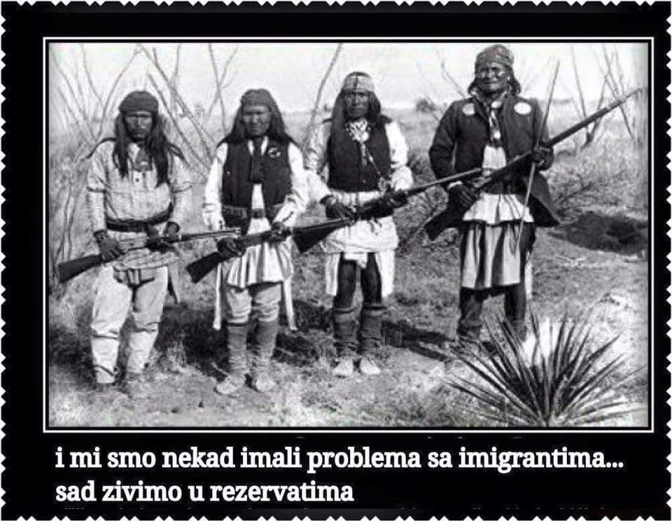 Indijanci poročajo, da so tudi oni imeli probleme z migranti pred stoletji in sedaj živijo v rezervatih saj so jim migranti pobrali vse.