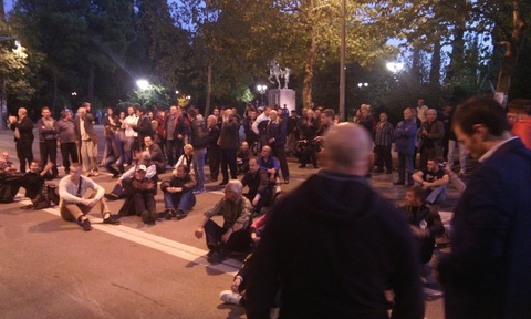 Poslanik Nebojša Medojević i potpredsjednik Skupštine Branko Radulović lakše su povrijeđeni u sukobu policajaca i demonstranata večeras u Podgorici, nakon čega je policija bacila suzavac i dvije šok bombe na okupljene građane.