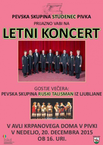 LETNI KONCERT PEVSKE SKUPINE STUDENEC v Pivki (20.12.2015)