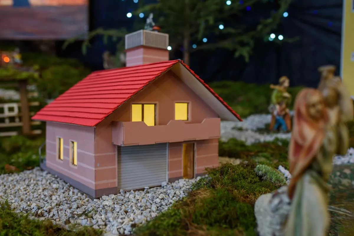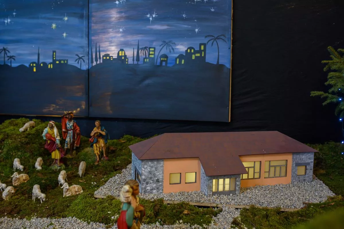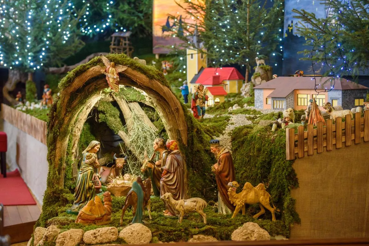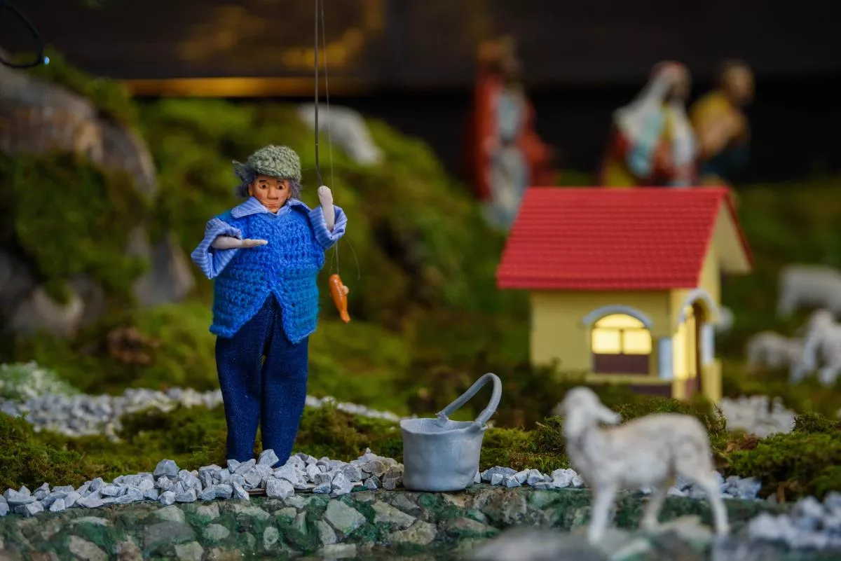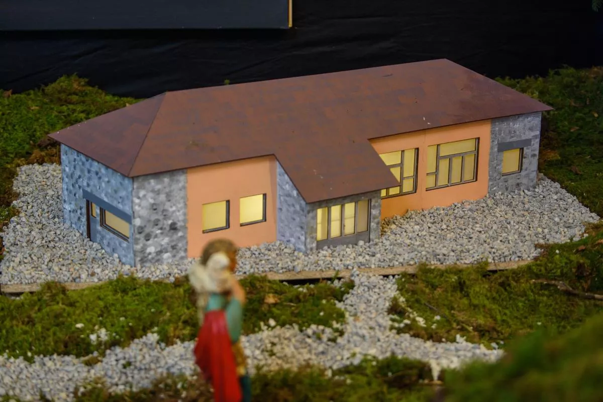 Posebnost letošnjih jaslic v Šentvidu je, da je v njih predstavljena vas Hrastov Dol z vaško lužo, gasilskim domom, vaško kapelico in nekdanjo staro šolo.