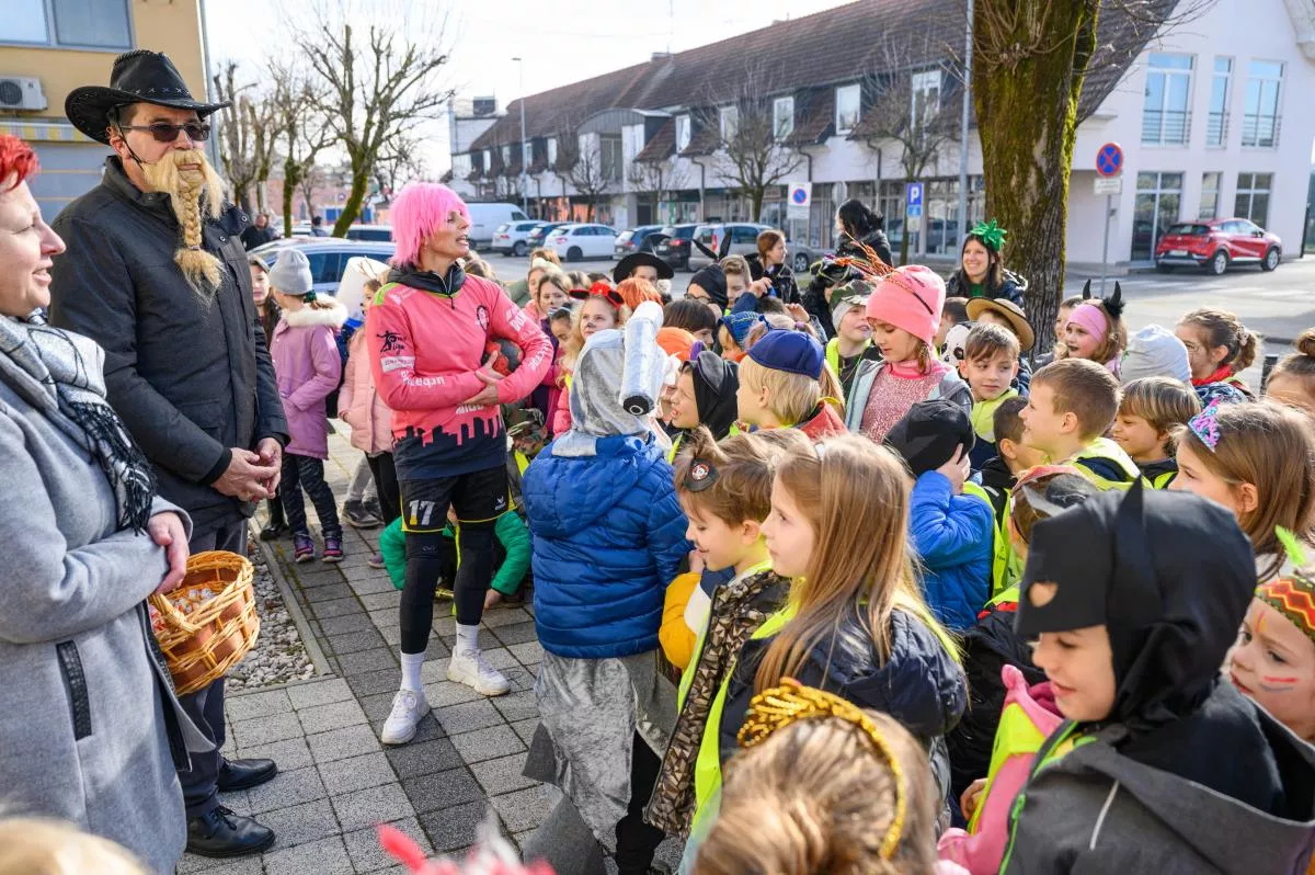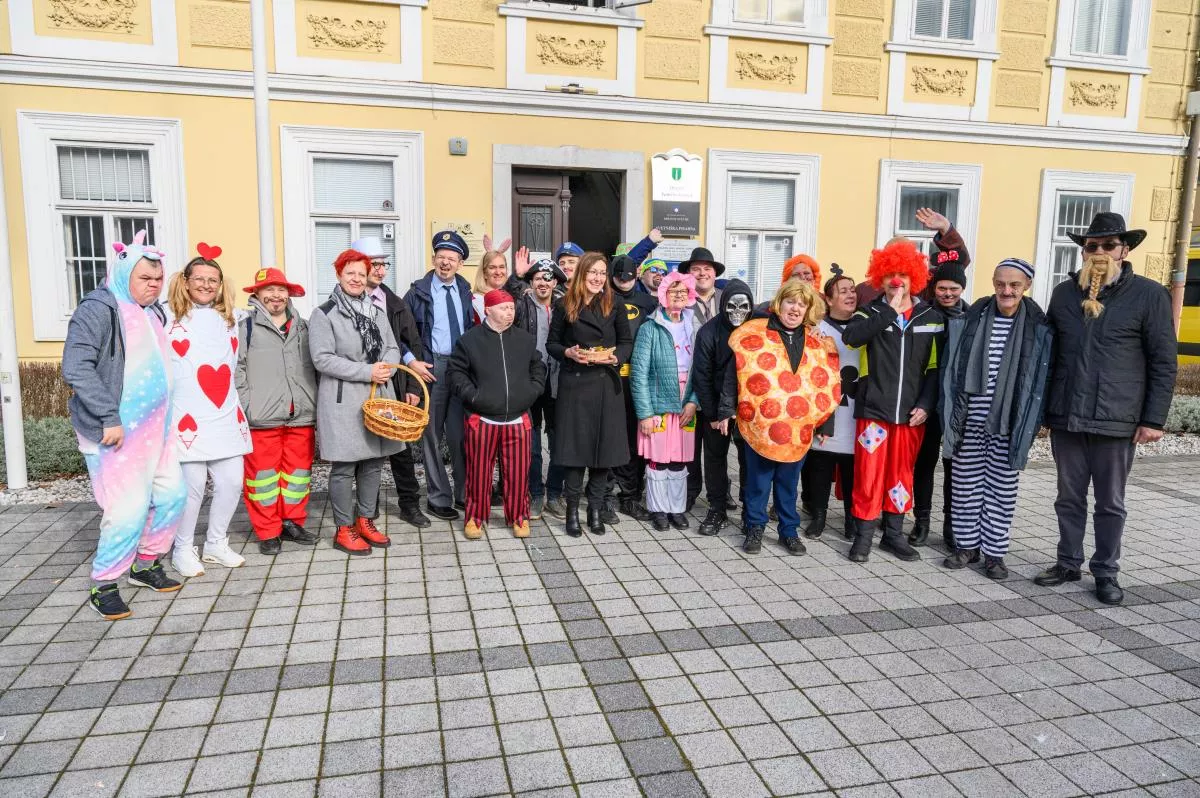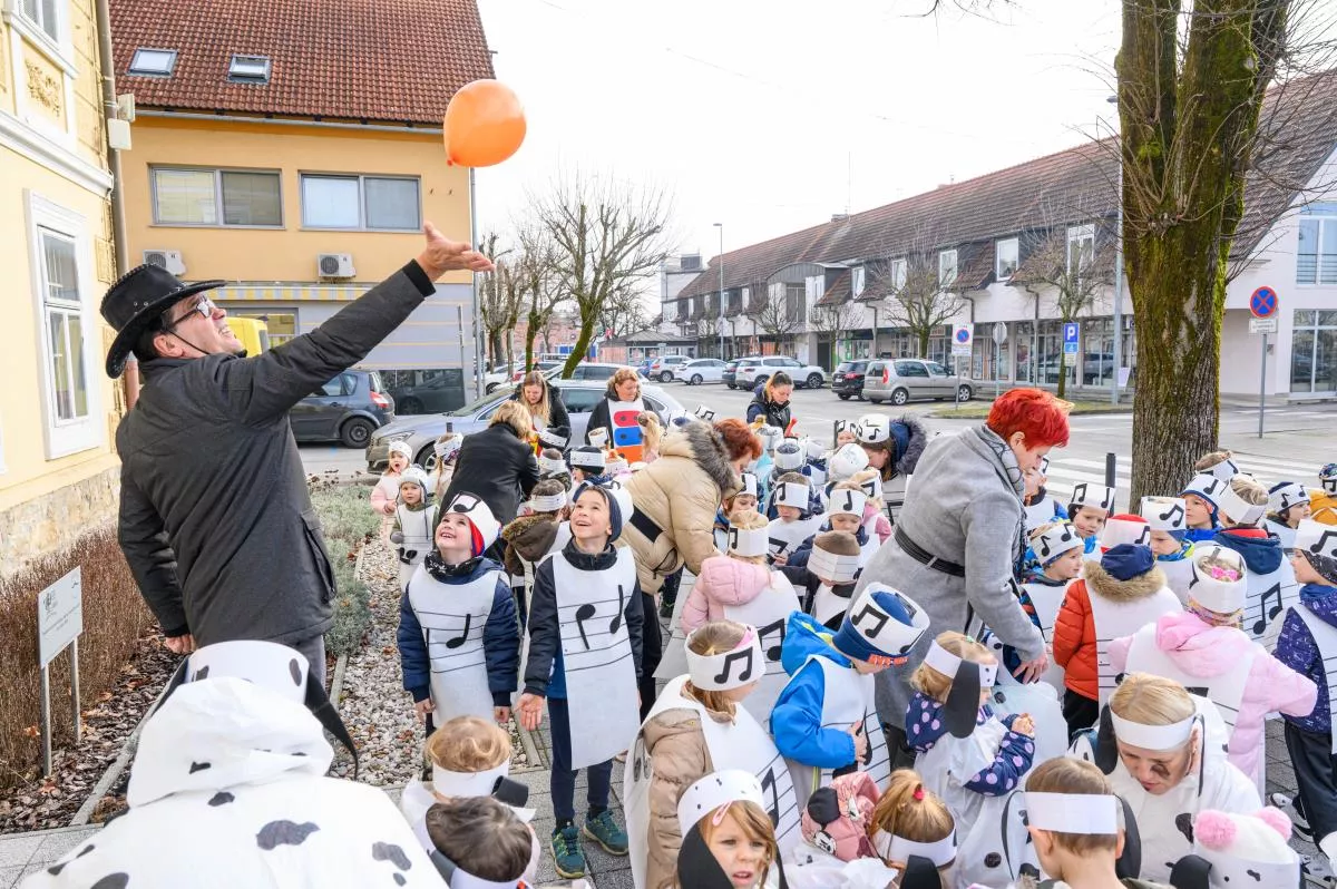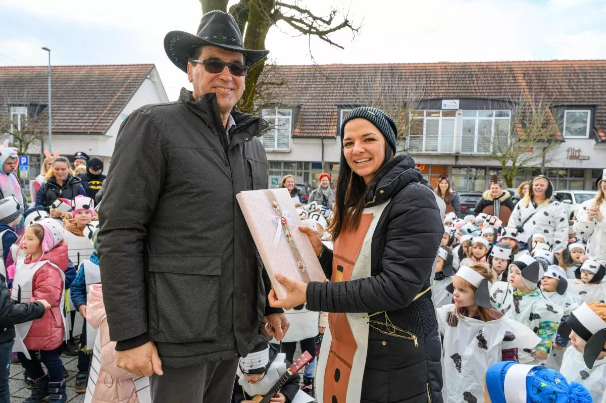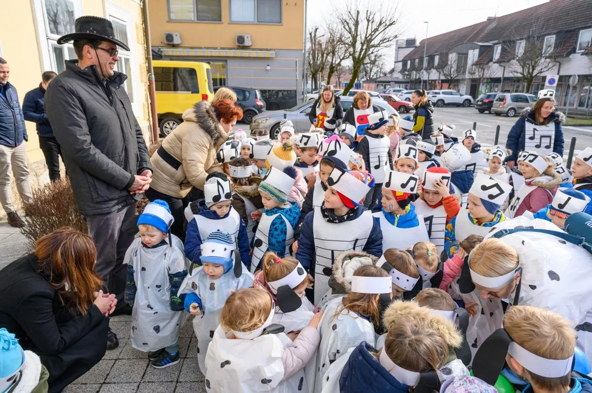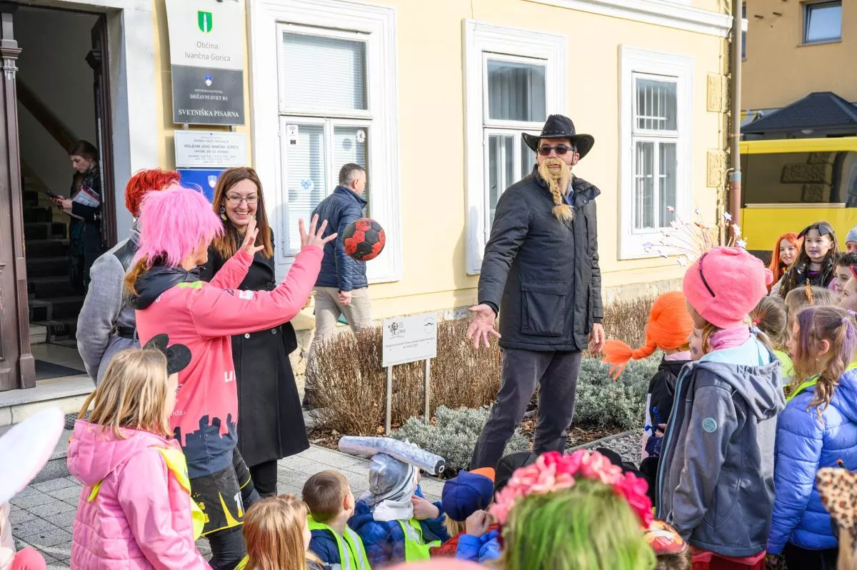 Na današnji pustni torek je župana Dušana Strnada in njegove zaposlene v občinski upravi obiskala prav posebna pisana druščina. Občinsko središče Ivančne Gorice so najprej zavzeli Dalmatinci, note in glasbila. Pustne šeme iz vrtcev Marjetica in Pikapolnica iz Ivančne Gorice so skupaj z županom zapele tudi vzgojiteljici Barbari, ki prav danes slavi okrogli jubilej.