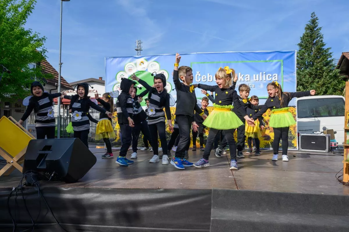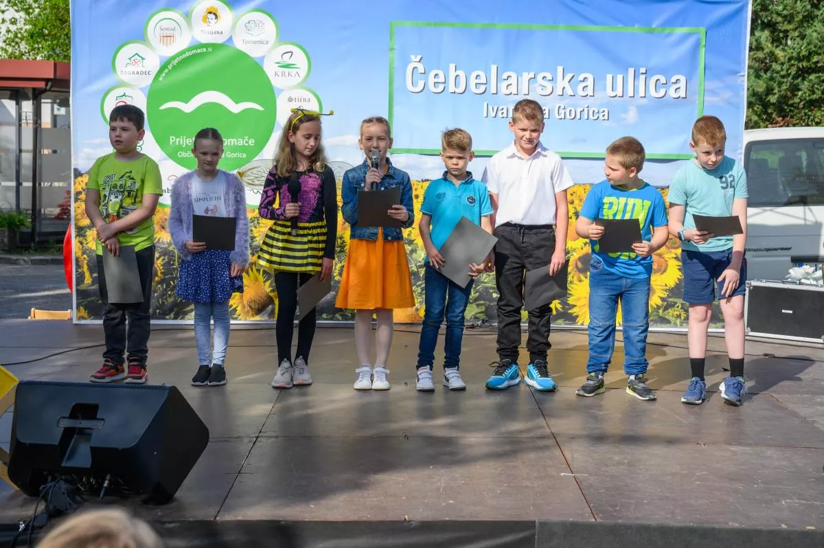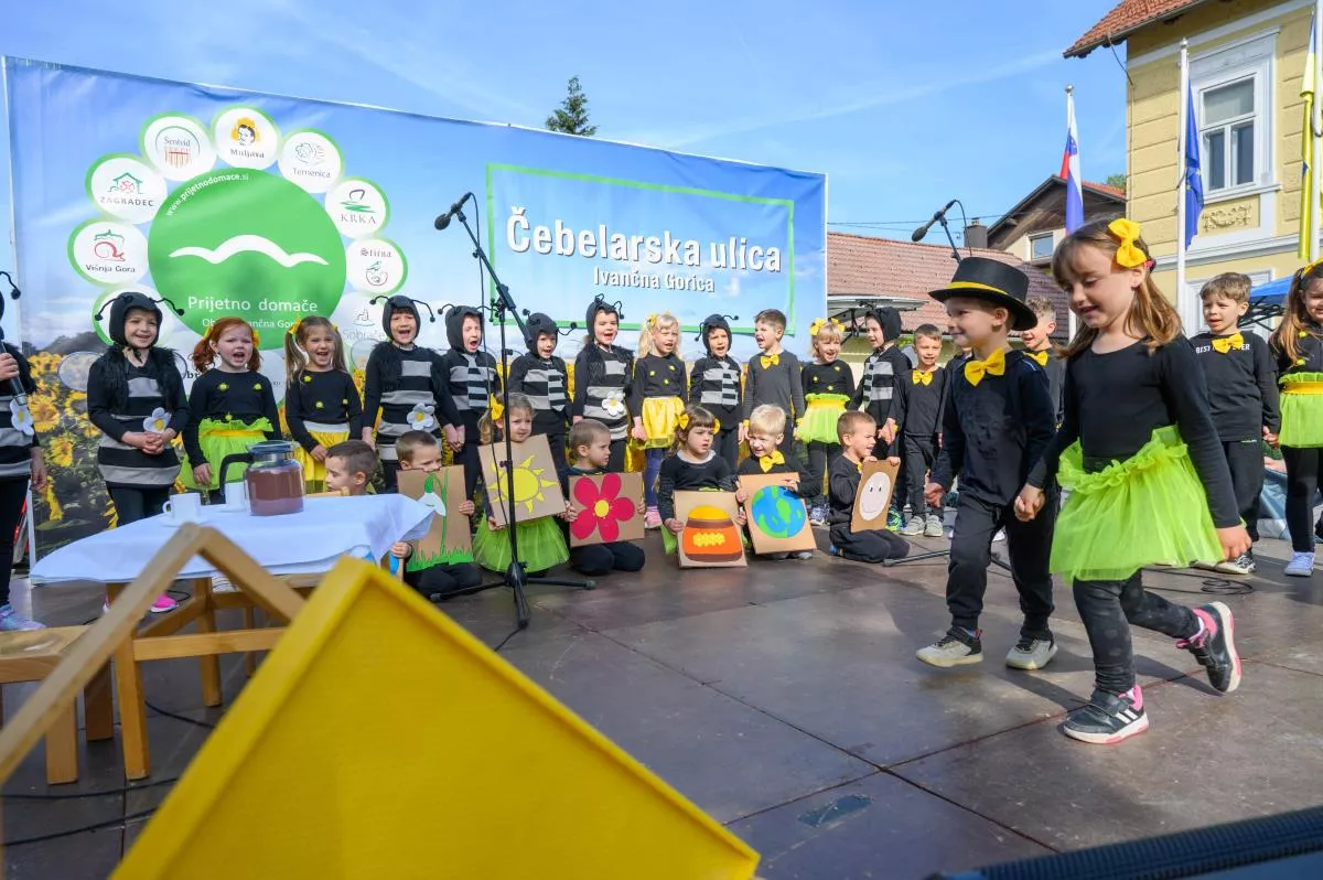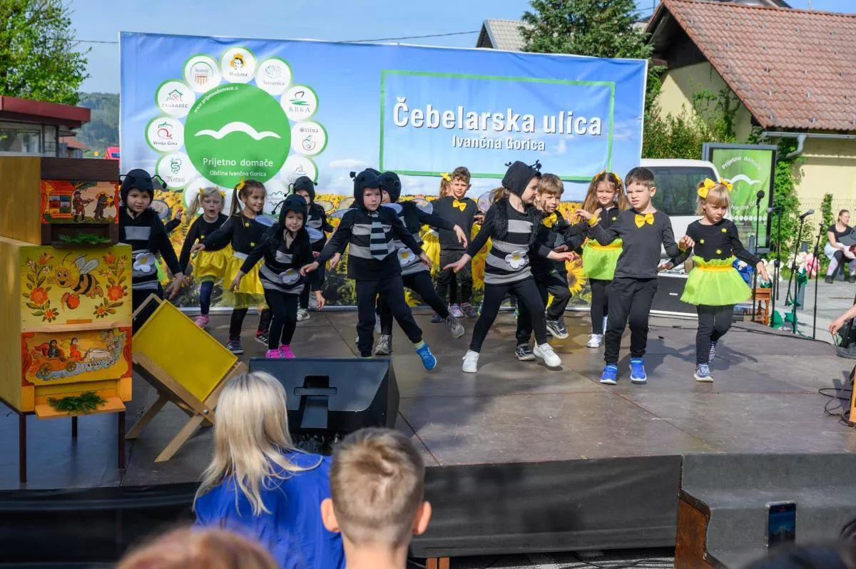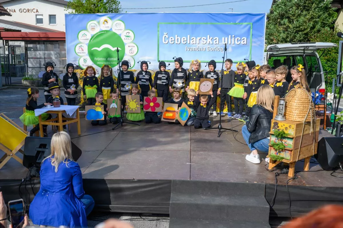 V znamenju čebel je bilo to dopoldne tudi dogajanje na odru Čebelarske ulice. Že v uvodu so razigrano nastopili vrtičkarji iz Vrtca Ivančna Gorica, enota Polžek Višnja Gora. Z deklamacijo so jim sledili učenci OŠ Ferda Vesela Šentvid pri Stični, Podružnična šola Temenica, učenci OŠ Zagradec pa so pripravili plesno točko z deklamacijo. »Čebelji strup, ki ne boli« se je glasil naslov predstave gledališke skupine »Čebelice« iz OŠ Stična, Podružnična šola Višnja Gora. Svoje so »povedali« tudi pevci in godci ljudskih pesmi Studenček, tudi tokrat pa sta se po Ivančni Gorici s Čebelarske ulice razlegala zvok harmonike in pesem ansambla Foksnerji.