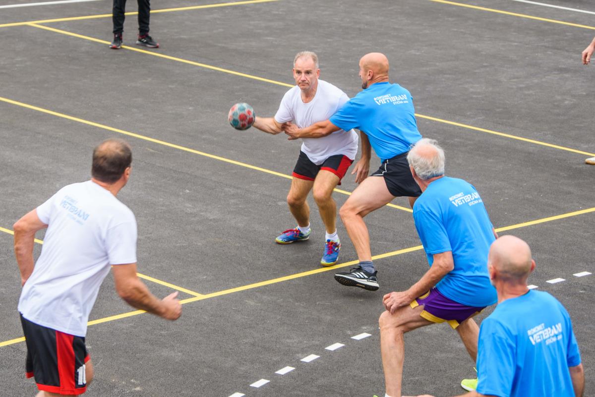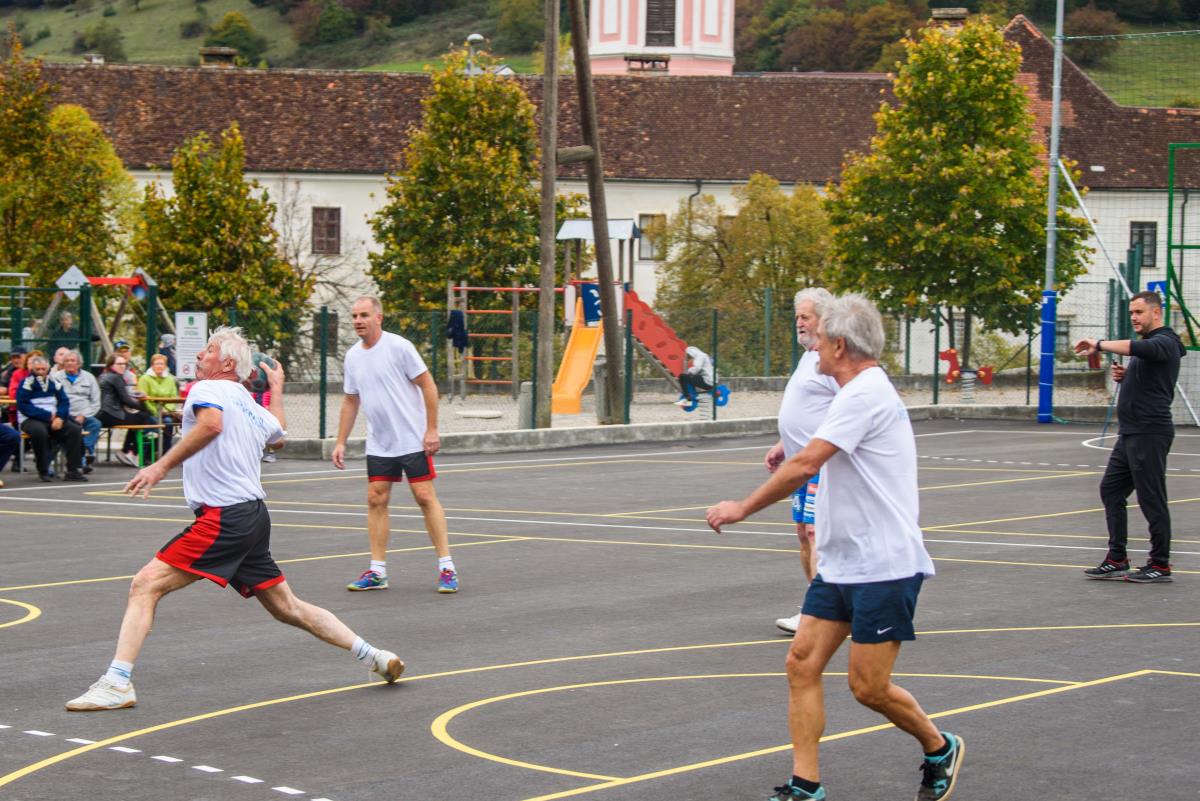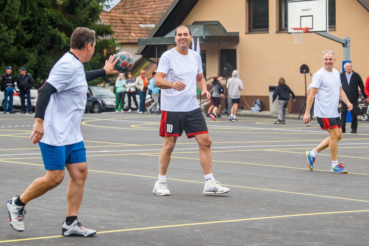 Odprtje sta spremljali tudi revijalni tekmi, in sicer so novo asfaltno podlago preizkusili najmlajši iz Košarkarskega kluba Ivančna Gorica ter nekdanji igralci rokometa iz Stične, Višnje Gore, Ivančne Gorice in Šentvida pri Stični. Za ekipo belih je nastopil župan Dušan Strnad, za modre pa podžupan Tomaž Smole. Kljub prijateljskem obračunu je bilo poleg atraktivnih potez med igralci prisotnega še kar nekaj tekmovalnega duha.