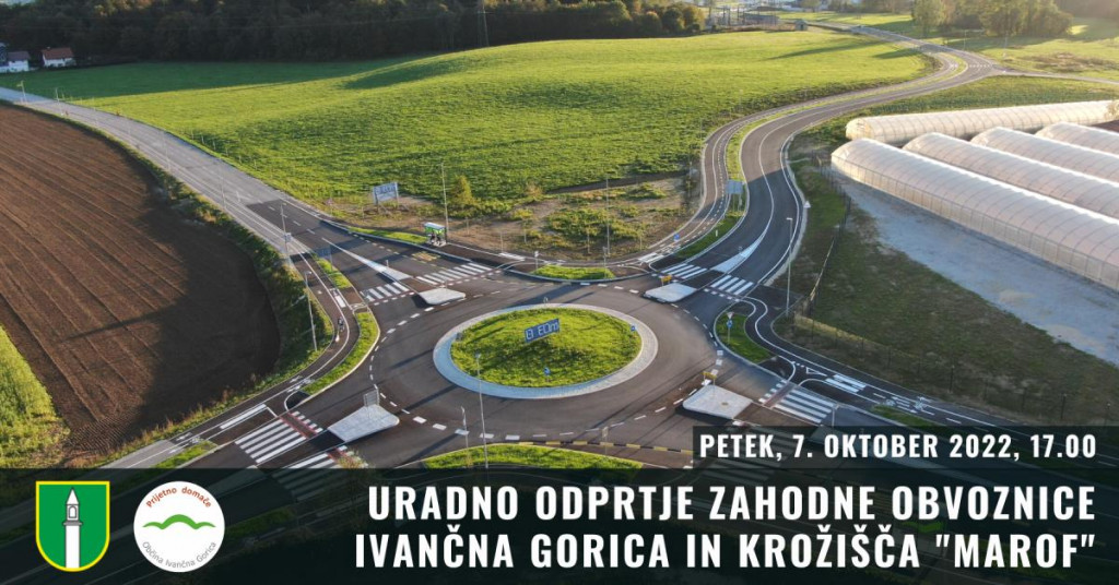 Občina Ivančna Gorica je zaključila z izgradnjo Zahodne obvoznice Ivančna Gorica in krožišča »Marof«. Novo pridobitev bomo slavnostno predali namenu v petek, 7. oktobra 2022, ob 17. uri, v neposredni bližini krožišča Marof.