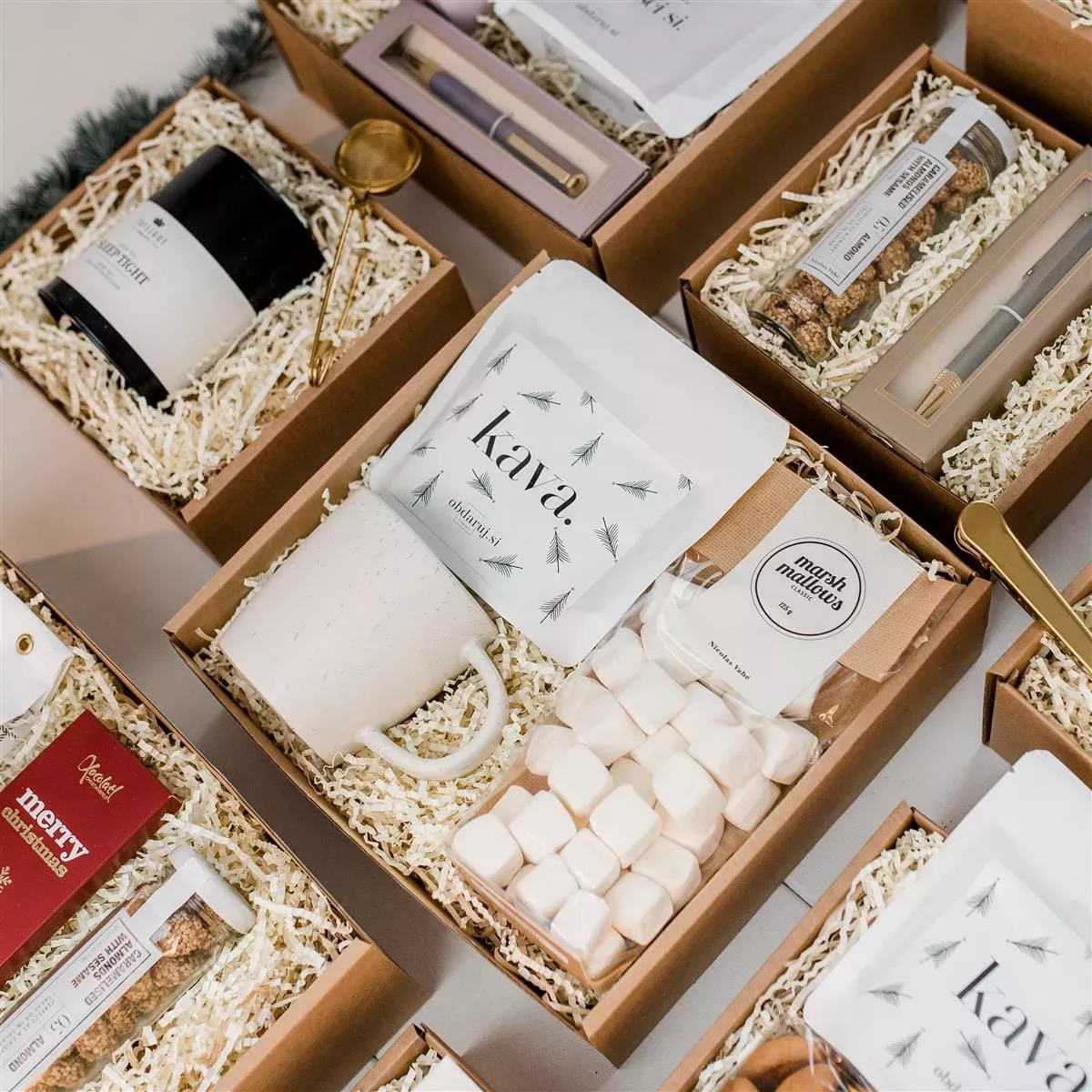 Pakete je mogoče prilagoditi z logotipom podjetja ali posebnim sporočilom, zato obdarovanje ostane profesionalno, a hkrati osebno. Takšne pozornosti gradijo odnose in ustvarjajo pozitivno delovno okolje.