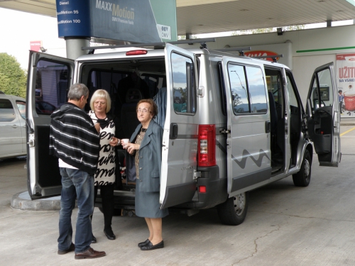 Parkiral sem svoj avtomobil v Vinkovo garažo in prisedel k njemu in Ivanki. Spotoma se nam je v Cerknem pridružila še Sabina Eržen in vožnja do Idrije, kjer nas je na dogovorjenem mestu pričakoval kombi, je minila ob prijetnem klepetu.