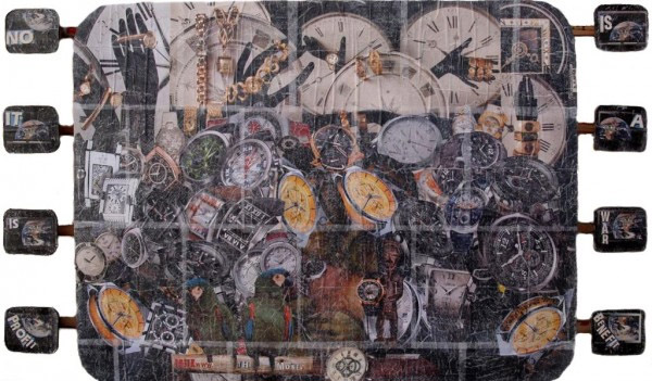 Folowww the Money - collage, 90 x 120 cm, 2010 Repyartrium 2011-1,1 Kilometer Tunnel Exhibition Texts on collage: Is a War Bennefit? No it is Profit! Followww the Money. No one understands you? / Nessuno ti capisce?