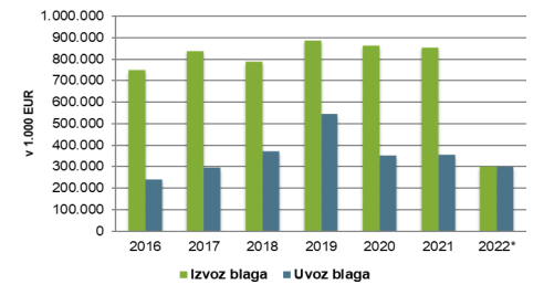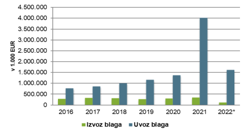 Opomba: (*) Podatki se nanašajo na obdobje jan-apr 2022 (posodobljeno julij 2022).