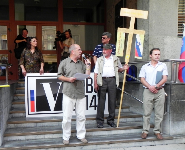 Dragi prijatelji, Slovenci, sodržavljani, nismo tukaj na tem ne tako priljubljenem kraju iz neke hudo močne potrebe po postavljanju in postopanju po mestu in pred pomembnimi stavbami in poslopji, ampak zaradi stanja v tej naši ljubi, obenem nesrečni in razdvojeni domovini Sloveniji.