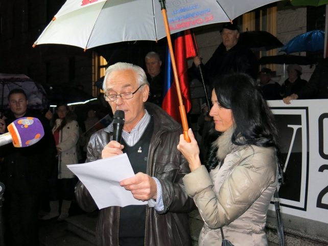 Redke svetle točke v tej slovenski temi so naše tradicionalne demonstracije, ki potekajo vsak dan v dosledno kulturnem vzdušju, brez nestrpnosti, prostaštva in žalitev. Z veseljem se jih udeležujem. Zato se zahvaljujem vsem organizatorjem, zlasti gospodu Primcu, njegovi ekipi, Odboru 2014, vsem govorcem in nastopajočim, posebej gospodu Kuntnerju, pa tudi nosilcem transparentov in zastav. Upam, da bodo naša prizadevanja pomagala. Tudi kamenček v mozaiku je pomemben. Kadarkoli greva z ženo po koncu demonstracij proti domu, sva zadovoljna, čutiva olajšanje v pogosto zaskrbljeni duši, misleč: Morda pa se bo obrnilo na bolje. Upajmo na novo slovensko pomlad, upajmo na novi DEMOS, upajmo na novo prebujenje narodove poštenosti, upajmo na pravično razsodbo ustavnega sodišča v primeru Patria. Bog živi domovino Slovenijo, ki še čaka na osvoboditev, kot je dejal Janez Janša.