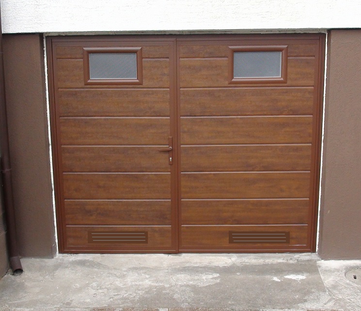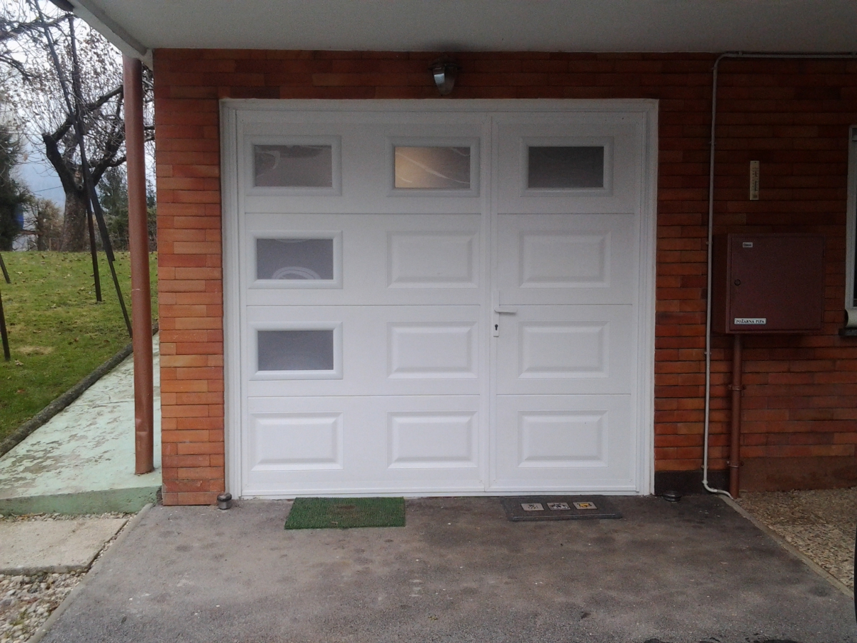 Izdelujemo dvokrilna klasična garažna vrata, sekcijska dvižna garažna vrata in drsna stranska garažna vrata. Da zaokrožimo ponudbo in ustvarimo estetski videz vašega objekta, izdelamo tudi pomožna enokrilna vrata z enakim izgledom, kot garažna vrata (pomožni vhod v garažo, kolesarnica ob garaži,...). Naredimo vam tudi vrata v vratih. To je osebni prehod, ki se odpira krilno v dvižnih vratih. Posebnost tega prehoda je nizek RF pohodni prag. Vsa dvižna garažna vrata, drsna garažna vrata in dvokrilna garažna vrata so lahko opremljena z elektromotorji na daljinsko odpiranje. V garažna vrata vdelamo svetlobna okna, zračnike, ključna stikala in razne zaskočne pripomočke. Toplotna izolativnost uporabljenih panelov za garažna vrata znaša Up=0,30 W/m2K. Dobavljamo jih v vseh niansah po RALU in imitaciji zlatega hrasta.