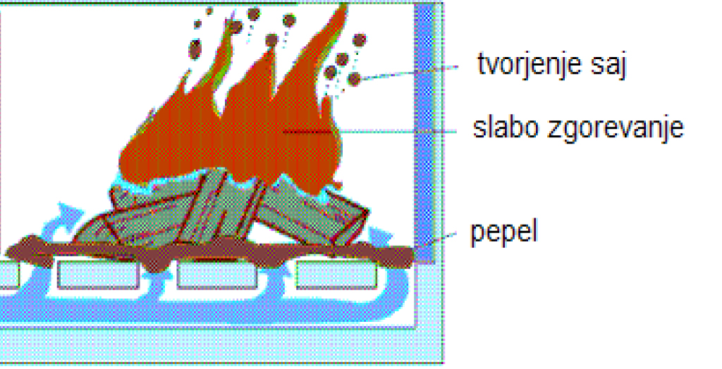 potrebne temperature za zgorevanje in bo slabo zgoreval.
