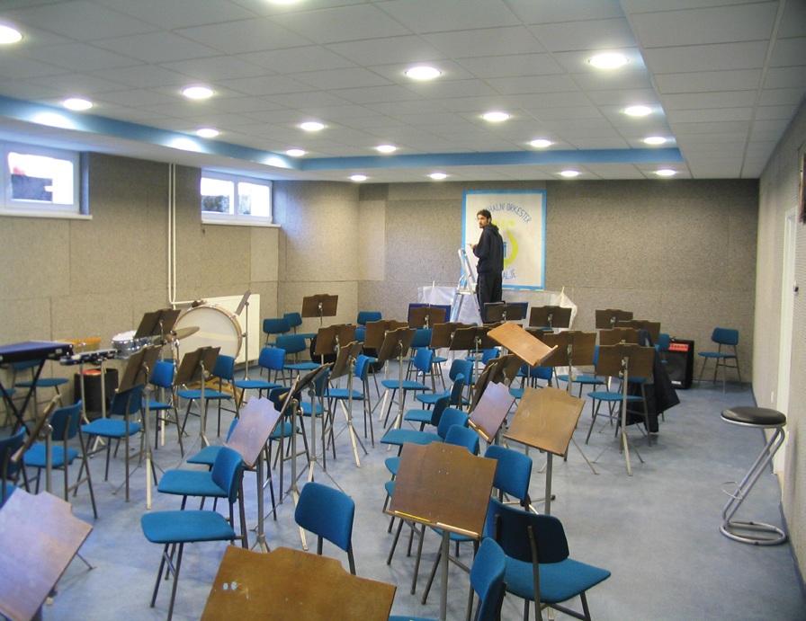 Vsega pa vendarle ne znamo in zmoremo sami, zato so nekatera dela morali opraviti strokovnjaki. Tako so v naših prostorih zamenjali okna, zmontirali nove radiatorje, napravili nov strop, oblekli stene, položili nov pod … Uporabili smo zvočno izolativne materiale (za strop in stene), tako da bomo s svojim muziciranjem manj motili okolico.