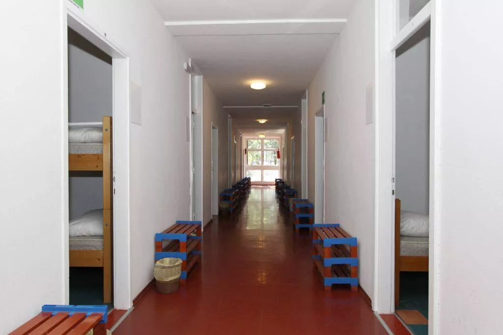 V paviljonu, kjer je recepcija, so v pritličju renovirane dvoposteljne sobe. V prvem in drugem nadstropju je 13 troposteljnih ter 4 šestposteljne sobe v vsakem. Troposteljne sobe imajo pograd in eno navadno ležišče. Družinske, šestposteljne sobe, imajo zakonsko posteljo ter dva pograda.