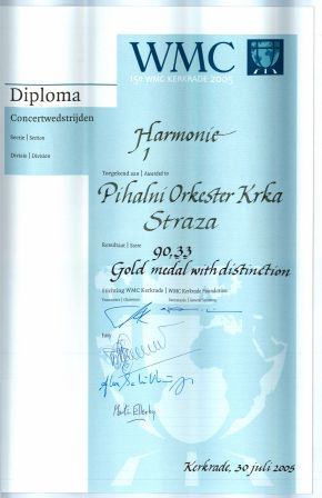 ♦ Svetovno glasbeno tekmovanje (WMC Kerkrade 2005), Kerkrade, Nizozemska; Zlata medalja s pohvalo v 1. kategoriji