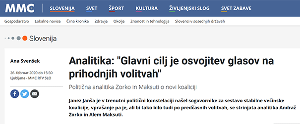 (Torek, 3. marca) Čisto resno vprašanje: Do kdaj še bo javna RTV Slovenija v svoje elitne oddaje in termine vabila vedno ene in iste tako imenovane politične analitike, kot sta Alem Maksuti ali Andraž Zorko, ki praviloma tudi napačno napovedujejo. Pa tu sploh ne gre za politično uravnoteženost, ampak za čisto stroko ...