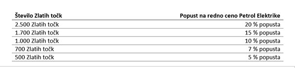 Z nakupi zbrane Zlate točke lahko tako že s 15. novembrom pri Petrol Elektriki (na tej povezavi) zamenjajte za ugodnejšo mesečno položnico elektrike. Izbran popust bo za vas pričel veljati že s 1. decembrom.