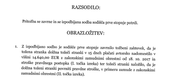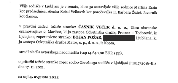 No, avtorja teh vrstic je zastopala odvetniška pisarna Francija Matoza.