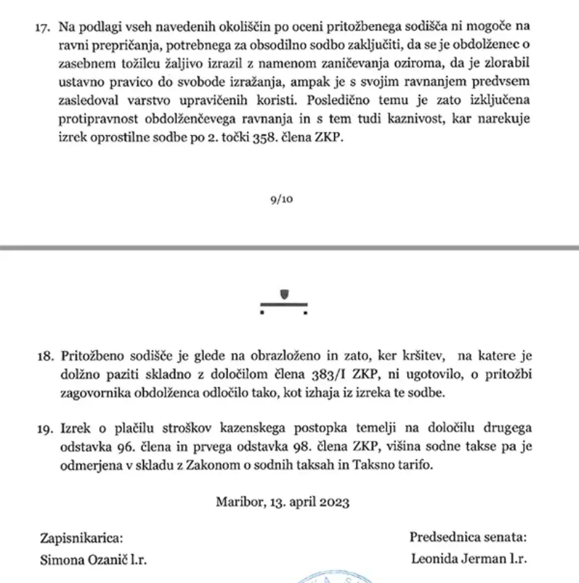 Iz sodbe Višjega sodišča v Marboru.