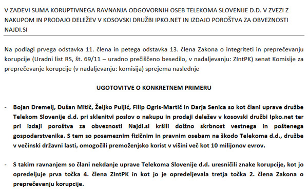 To, da je blizu cmerarjeve vlade nekdo zgolj koruptiven, se mu ne šteje v slabo, nasprotno. V stranki in vladi kriminalcev, prevarantov, pijancev, bedakov in konjev je to celo dobrodošla karakteristika posameznika. Malo manj pač to, da nekoga ujamejo pri nečednih rabotah. Ko so s prsti v marmeladi zasačili sina telovadca in udbotožilke, se je kot doktor prava izgovarjal kot osnovnošolec, ki pred tablo išče pomoč sošolcev...Prvi, ki je koruptiven je Klemenčič. Ampak, on je tudi vse zgoraj našteto. Evolucija ga je zaobšla, zato se mu pol grehov oprosti.