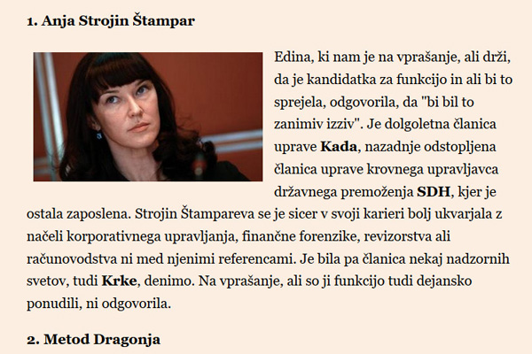 Za izbrance mafijskega botra je priporočljivo, da so predvsem ubogljivi in vodljivi. Inteligenca in samoiniciativnost sta nezaželjeni, celo lahko škodujeta. Še nekaj, kandidatka Anja je ,, jebozovna,, zato imata frizer in pediker prednost v službenem času pred katerikolimi službenimi akti...Ko bo pač Petra kaj pravega dobila v usta, se bo morda celo naučila govoriti in prenehala jecljati. Cmerar je dolgo obiskoval logopeda in je pomagalo. Morali so ponj v Izrael, a vseeno, cilj opravičuje sredstva.