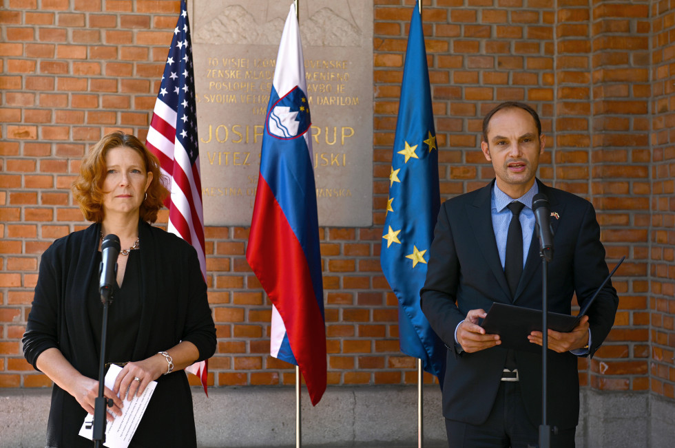 Minister dr. Anže Logar in začasna odpravnica poslov veleposlaništva ZDA Susan Falatko | Avtor Tamino Petelinšek/STA