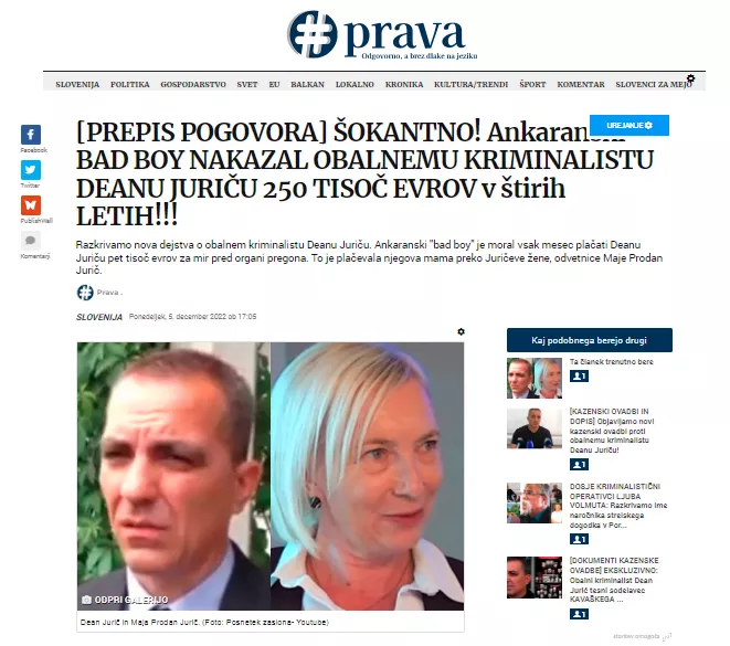 Pričakovano. Pričelo se je. V ponedeljek je avtor tega članka imel informativni razgovor s kriminalisti zaradi vloženega kazenskega pregona obdolžitve in žalitve s strani obalnega kriminalista Deana Juriča proti neznanim storilcem zaradi objavljenega sinopsisa pogovora med Ankarančanom in še dvema osebama. V njem so se pojavili očitki, da je moral Ankarančan plačati v štirih letih obalnemu kriminalistu iz Maribora Deanu Juriču približno 250 tisoč evrov in si več let zagotovil mir pred organi pregona. Ko je prvo plačilo zamudil, je obalna kriminalistična ekipa pod vodstvom Juriča v zapor po hitrem postopku spakirala Ankarančevo zelo bolehno mater. Zaradi tega je Ankarančan dobesedno znorel in Juriča pričakal konec maja 2021 v enem izmed lokalov v Ankaranu in z njim fizično obračunal.