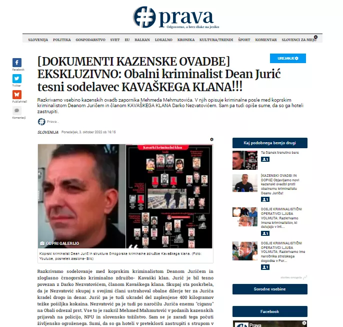 V našem mediju smo med drugim zelo obširno raziskovali domnevna sporna dejanja dolgoletnega obalnega kriminalista Deana Juriča iz Maribora, sedaj zaposlenega na Nacionalnem preiskovalnem uradu po poročanju Nova24tv. Razkrili smo vloženi kazenski ovadbi proti Juriču in njegovim ožjim sodelavcem, kjer se jim je očitalo malo morje domnevnih nepravilnosti. Enako smo razkrili tudi anonimno pismo nekdanjih zaposlenih na SK PU Koper iz leta 2010. Razkrili smo, da naj bi Jurič domnevno od prebivalca Ankarana v štirih letih prejel približno 250 tisoč evrov. Enako se je tudi razkrila vrednost njegove hiše v Ankaranu. V dveh člankih smo tudi predstavili, da je Jurič sodeloval in dajal navodila izdajalskemu krtu slovenske celice Kavaškega klana Darku Nezvatoviću, sedaj razkritemu tajnemu delavcu policije. Tokrat pa vam razkrivamo, kje je zaposlen Juričev dolgoletni sodelavec Dušan Ribaš. Nikjer drugje kot na obveščevalnem oddelku znotraj SK PU Koper. To ne pomeni nič drugega, da ima Ribaš dostop do ključnih in najbolj občutljivih obveščevalnih podatkov slovenskih, evropskih in mednarodnih institucij za boj proti organiziranemu kriminalu in prepovedanimi drogami. V našem mediju smo tudi tako razkrili, da Juričeva ekipa dobesedno na Obali nadzoruje celotno trgovino s kokainom, heroinom itd... Policija in Jurič so vse navedbe večkrat zanikali. Kljub temu dvom v čistost obalnega kriminalista Deana Juriča ne more izginiti, saj resnično dvomimo, da bi si kdo obremenilne informacije o Juriću in ekipi dobesedno izmislil. Nič, priča smo le še enemu "NE BOJ, MESARSKO KLANJE" med različnimi obalnimi kriminalističnimi- "underground" frakcijami. Spoštovani obalni kriminalist Dean Jurič, medij Prava je v tej vaši medsebojni vojni le v vlogi sela, ki posreduje sporočila. Mogoče je pa res čas, da se vsi osrednji akterji usedejo na pijačo in razčistijo o dejanjih iz preteklosti.