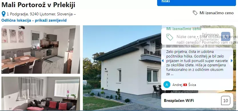 Drago Kocbek oddaja Mali Portorož v Prlekiji blizu Ljutomera. (Foto: Posnetek zaslona-Booking)