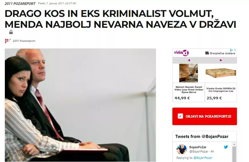 Že leta 2011 je eden najbolje obveščenih novinarjev v Sloveniji Bojan Požar napisal članka z naslovom DRAGO KOS IN EKS KRIMINALIST VOLMUT, MENDA NAJBOLJ NEVARNA NAVEZA V DRŽAVI (7.1.2011) in DRAGA KOSA ODSLOVILI KAR PO MEJLU, TODA NJEGOVO POLICIJSKO OMREŽJE OSTAJA (5.11.2011) v katerih je razkrival imena omrežja Draga Kosa.
