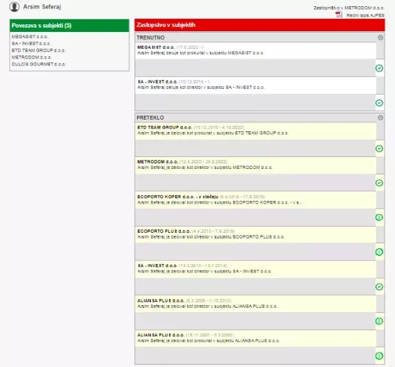 Arsim Seferaj, kjer je lastnik oz. je bil v preteklosti lastnik. (Foto: Posnetek zaslona- E-bonitete)