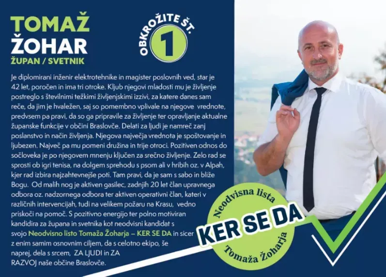 Tako se je župan Braslovč Tomaž Žohar predstavljal svojim volilcem pred zadnjimi lokalnimi volitvami v letu 2022. (Foto: Posnetek zaslona-Facebook)