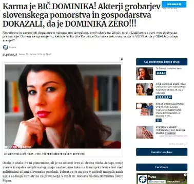 "Več virov z Ministrstva za pravosodje, Socialnih demokratov, Nacionalnega preiskovalnega urada in odvetniških krogov so nam zaupali sledeče informacije o Nepremičninski podrtiji na Litijski cesti 51 v Ljubljani. Viri blizu stranke Socialnim demokratom so nam zaupali, da je eno ključnih vlog ODIGRAL mož Dominike Švarc Pipan, Matic Pipan. Kot so nam pripovedovali viri iz stranke, se Matic Pipan in obalni podjetnik Sebastjan Vežnaver poznata iz preteklosti. Nekaj jih tudi namiguje, da sta zelo dobra znanca. V intervjuju za Cosmopolitan pa je lahko vsak prebral, da je Dominika Švarc Pipan zelo zvesta in srečno zaljubljena v svojega moža Matica Pipana. Isti viri so nam povedali, da je Švarc Pipan izvajala "čudne projekte" že kot državna sekretarka pri tedanji ministrici za pravosodje Andreji Katič pod sumljivim vplivom svojega moža. Isti viri tudi namigujejo, da je še en sporen posel, ki se je pojavil v medijih povezani z ministrtvom za pravosodje bil z "nasveti" vpleten Matic Pipan.Ne smemo pozabiti, da so tudi za generalnega sekretarja stranke SD Klemna Žiberta na Tarči povedali, da pozna (zelo) dobro Vežnaverja. Viri iz ministrstva za pravosodje pa so nam potrdili isto kot so razkrili v Tarči in v Demokraciji, da je eno ključnih vlog odigral nekdanji predsednik Računskega sodišča in sedaj državni sekretar na ministrtvu za pravosodje Igor Šoltes. Strinjajo se, da so v Tarči pokazali ključne ljudi, ki so posel najbolj forsirali, da se izvede v letu 2023. To je poleg Šoltesa, "večnih dežurnih krivcev Gojkovič, Starček in Gervas Hočevar" tudi državna sekretarka na ministrtvu za finance Saša Jazbec, žena Marka Jazbeca, predsednika uprave paradržavne zavarovalnice Sava Re. Omenjena paradržavna zavarovalnica pa je tudi lastnica Sanitorij Rožna dolina v lastništvu Diagnostičnega centra Bled, ki ga večinsko obvladuje Sava Re s Zavarovalnico Triglav. Tudi Sanitorij Rožna dolina je hotela kupiti omenjeno stavbo, a je Vežnaver dobil veliko boljšo finančno ponudbo od ministrtva za pravosodje. Vprašajte se zakaj? Naši viri blizu Nacionalnega preiskovalnega urada bi naj prišli na sled, kako je potoval denar. S pomočjo ene izmed nepremičninskih agencij v Ljubljani in fiduciranega računa odvetnice se je del kupnine znašel na enem izmed bančnih računov v Dubaju. Ne smemo pozabiti, da Nina Zidar Klemenčič ni zanikala na Tarči, da je prejela milijon evrov nagrade ali da bi zavrnila navedbe, da je morala pokriti 750 tisoč evrov vreden kredit. Iz odvetniških krogov pa so nam namignili, da se je del kupnine v tem poslu znašel v Dubaju. Isto sami sumijo, da je šel iskat denar za poplačilo kredita nekdo iz zaupnikov odvetnice Nine Zidar Klemenčič ali ona sama. Odvetnišli krogi pa so nam namignili, da je nekdo moral imeti v Dubaju zanimive sproščene božično novoletne počitnice. Glede na vsa etična pravila se sprašujemo, ali bo predsednik Odvetniške zbornice Slovenije Janez Starman dovolil, da mu bo neka Nina Zidar Klemenčič krnila ugled zbornice? Kdaj bo ukrepal?!, se lahko samo sprašujemo. Dubajska dogodivščina pa bi se naj zgodila po informacijah naših virov zelo verjetno med božičnimi novoletnimi prazniki in prihodom pravoslavnega božiča. Ostalo je zgodovina. Sprašujemo se, zakaj je Jazbečeva forsila nakup, ko pa vemo, da spada v Jamnikov krog. Ali jih je napeljevala in pošiljala, usmerjala v past? Nastavila se je past SD. Mogoče pa si bosta Nina Zidar Klemenčič in Dominika Švarc Pipan v prihodnje ogledali filma Pisma z Iwo Jime in film Jerry Maguire, kjer bodo Tom Cruiese, Nina Zidar Klemenčič in Dominika Švarc Pipan vzklikali "SHOW ME THE MONEY"!"
